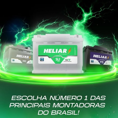 As baterias Heliar, líder no Brasil há mais de 90 anos e equipando 2 em cada 3 veículos novos produzidos no país, oferecem durabilidade superior e tecnologia de ponta como EFB e AGM, garantindo potência inabalável, resistência a vibrações, corrosão e extremos climáticos, com vida útil estendida para partidas rápidas e confiáveis, escolha número 1 das montadoras. Escolha Heliar agora e eleve seu veículo ao máximo desempenho – energia que dura e impulsiona sem falhas!